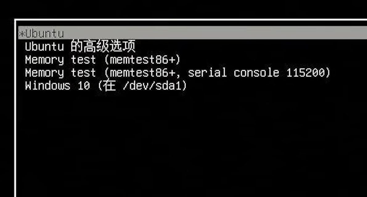 双系统设置好ubuntu系统重启动后正常应该是进入这个界面