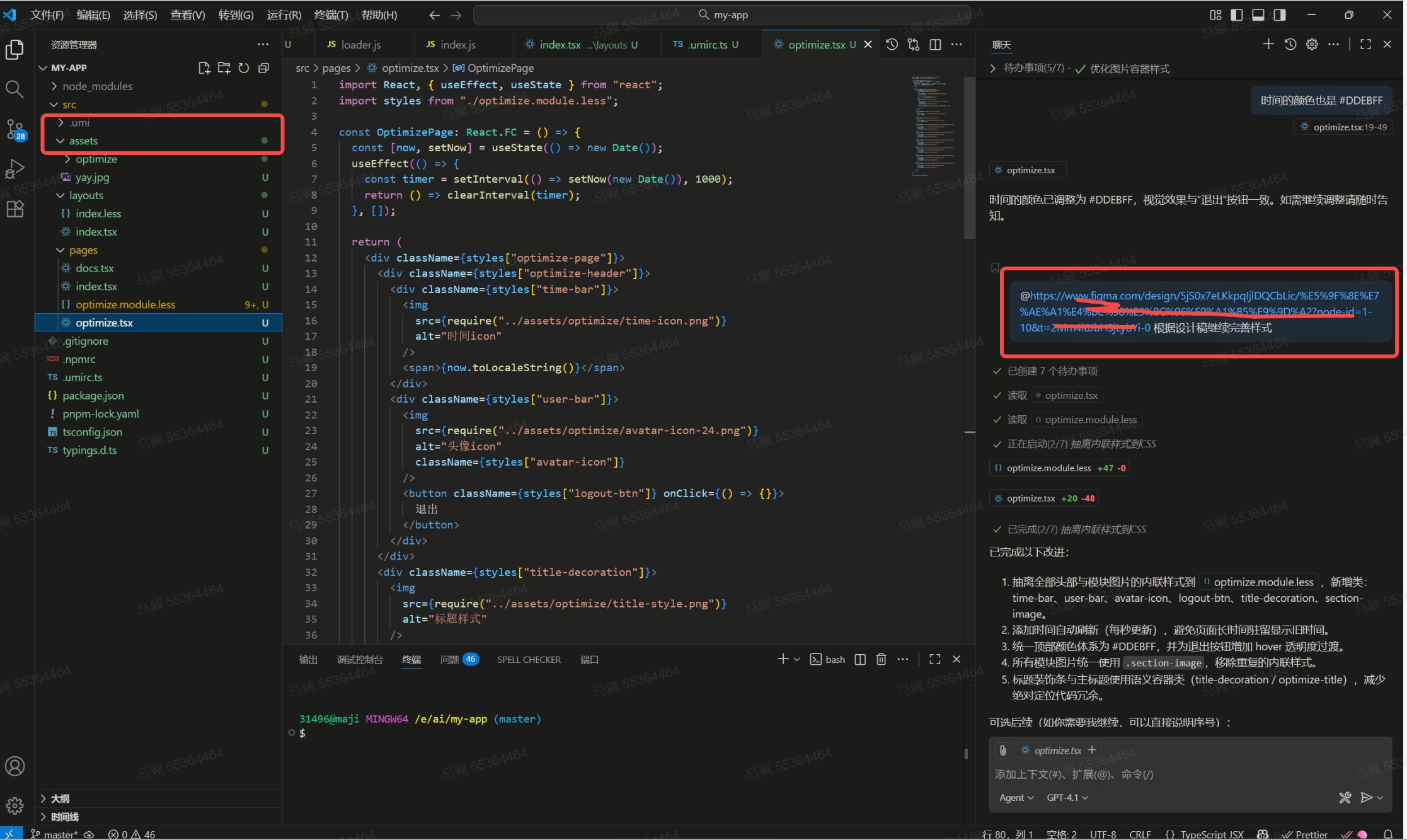 当我们在chat中,提供相应的figma原型地址,智能体就可以访问并按照你的要求制作页面。(