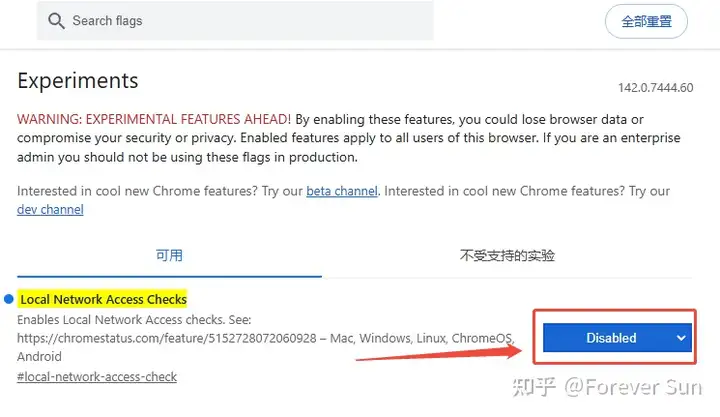 1.地址栏输入:chrome://flags/#local-network-access-check