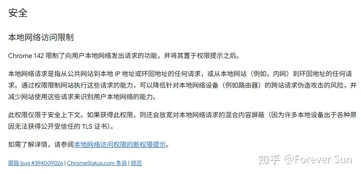 通过查询相关资料发现:是chrome 官网为了防止本地网络受到攻击做的更新