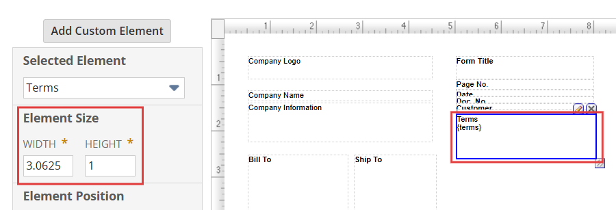 其实非常简单,我们进入自定义基础模板的页面,找到目标基础打印模板。可以看到有一个字段叫做Body Fields,这里对应的内容就是Invoice页面上显示的那些字段。在左边Element Size对方可以看到该部分显示内容的Width和Height设置。