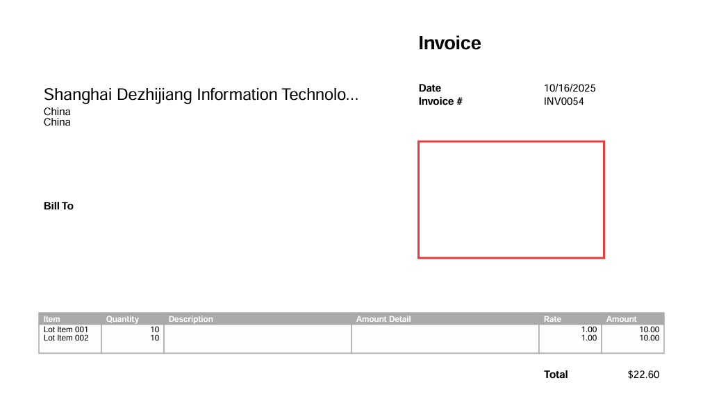 我们用鼠标选中Body Fields部分,然后将Width和Height的数字都调整为0,该位置原本的图标将显示为一个小点,这样再预览Invoice时就可以看到,原本的字段们就消失了。