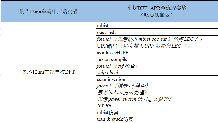呕心沥血——景芯12nm车规中后端UPF hierarchy实战项目出炉!这一次剑走偏锋,我们的实战只靠文档+一对一辅导!不提供视频!基于景芯团队丰富的SoC/MCU芯片定制经验,我们特选取景芯SoC HD6860项目中的车规处理器(安全岛系统)进行后端全流程实战培训。