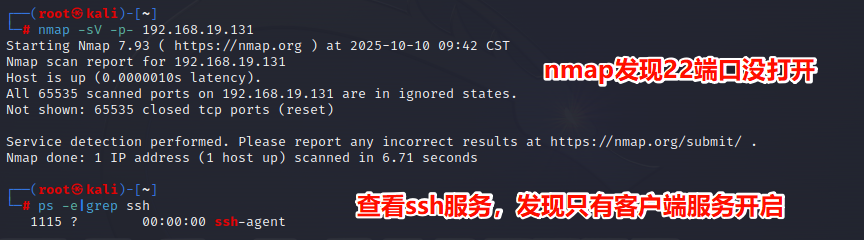 ps -e|grep ssh 确定服务器端和客户端的 ssh 服务都打开