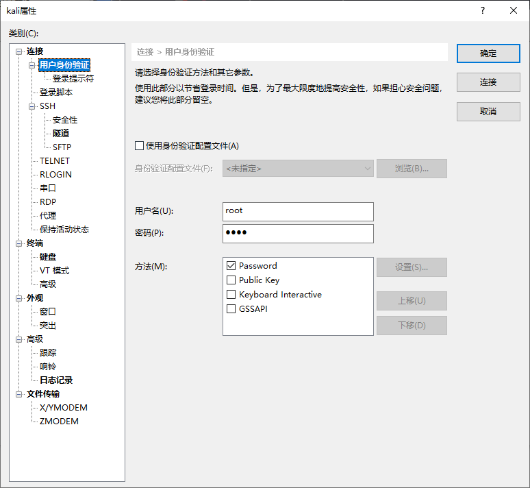 xshell连接kali ssh服务拒绝了密码