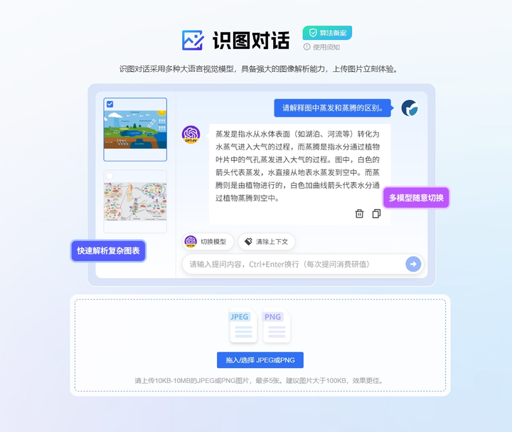 - 图像解析:支持上传分子结构图、实验图表,AI自动解析内容并生成分析报告。