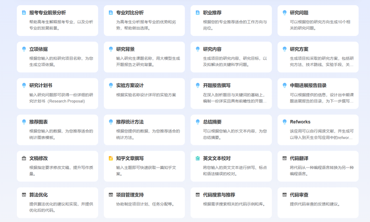 - 指令优化:自动优化用户提问,提升AI输出质量,例如快速生成立项依据或研究方案。