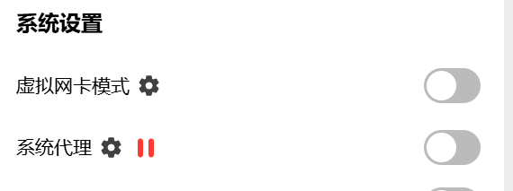 我自己用的是Clash Verge,其中也有系统代理和虚拟网卡模式供我选择,如下: