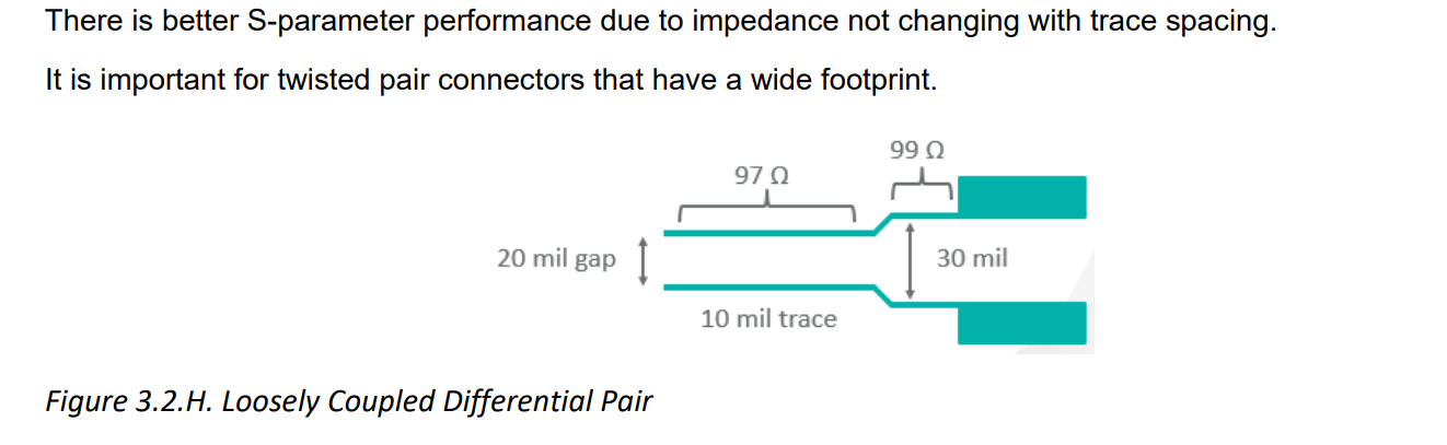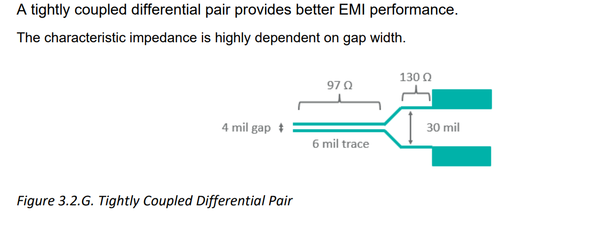 例如某家芯片手册上对其PEIC信号上布线要求就有提及到差分线优先使用松耦合模式。