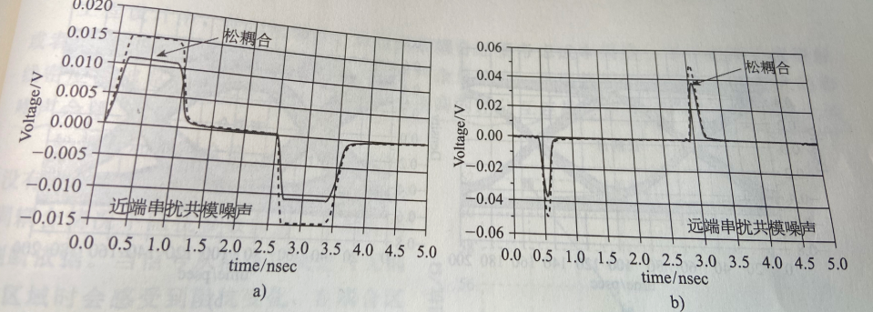 A,对比松紧耦合的两种CASE下,串扰引起的差分噪声的大小,其抗差分噪声的能力: