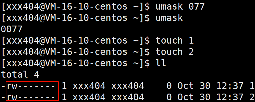 其中,文件拥有的最终权限 = 起始权限 & (~权限掩码)