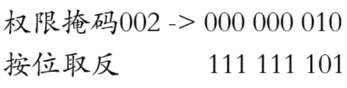此处的0002是八进制,并且只看后三位,将其转换为二进制为:000 000 010,此时就是权限掩码,它的作用是从起始权限中,去掉凡是在权限掩码中出现的权限。