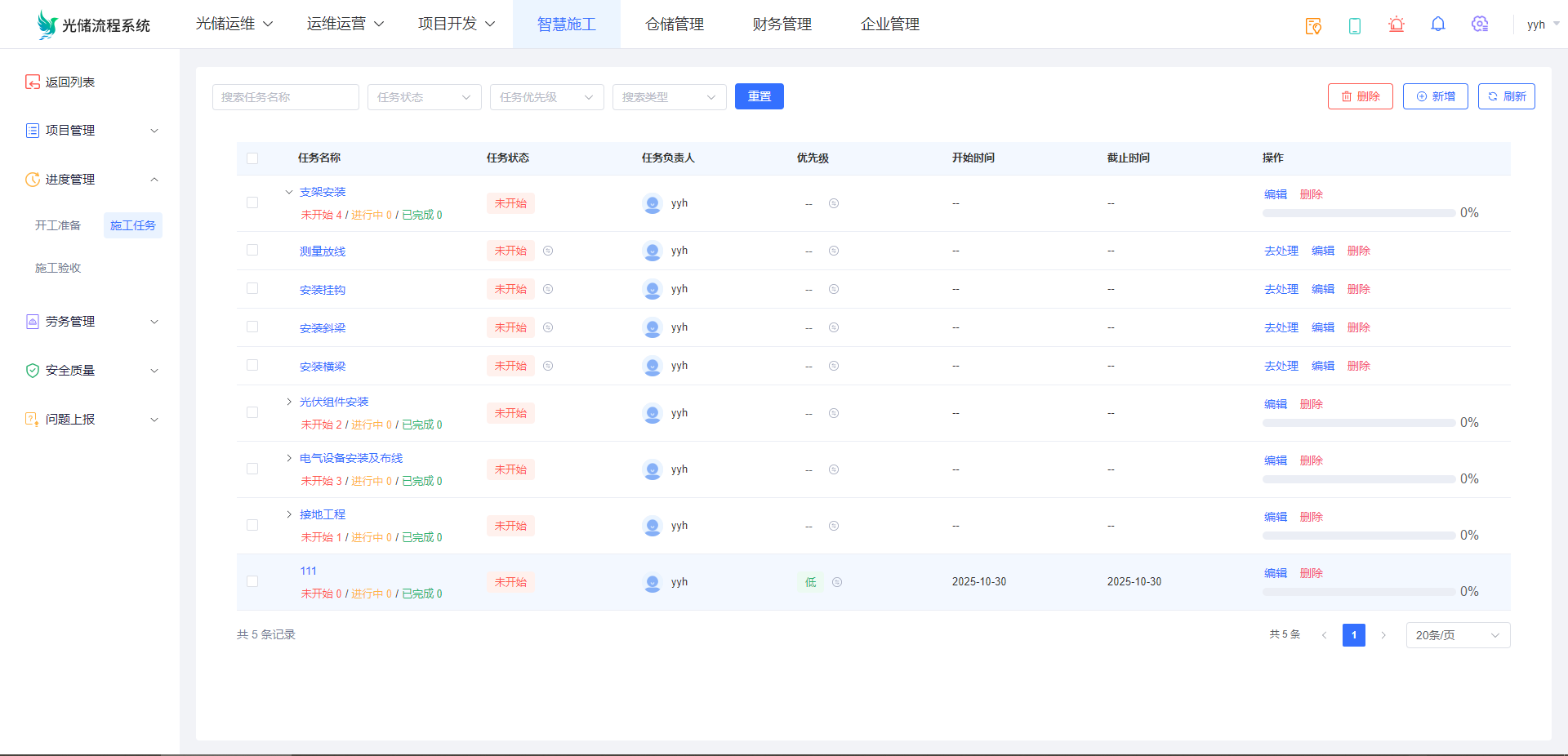 全周期进度追踪:借助数字化光储流程系统实时监控任务状态,动态掌握各环节进度,一旦出现滞后,立即分析原因并调整资源投入,避免工期延误。