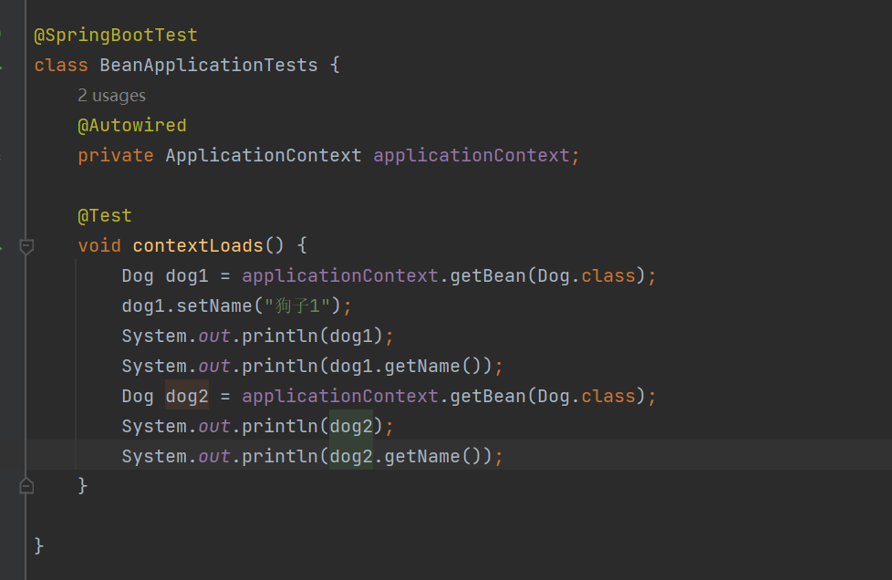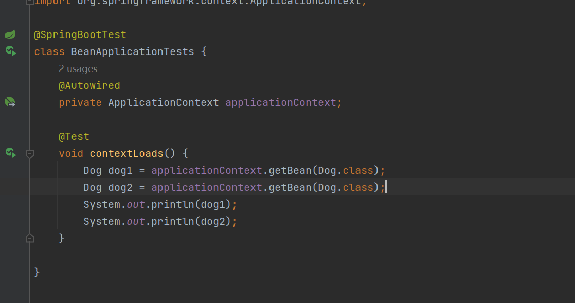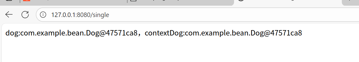 发现输出的 bean 对象地址值是一样的,说明每次从 Spring 容器中取出来的对象都是同一个