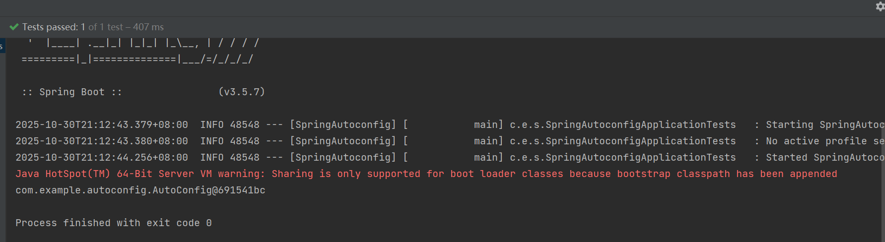 它说没有 com.example.autoconfig.AutoConfig 这个类型的 Bean