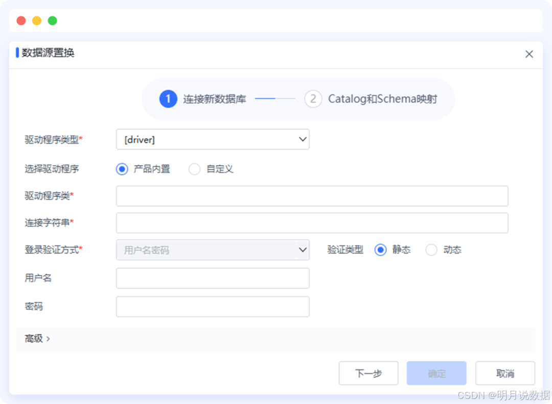界面化操作完成新数据源连接,支持自动 / 手动匹配 Catalog/Schema 映射;