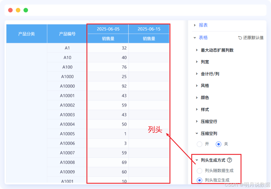 列头独立生成:确保每页列头完整,按需选择,兼顾性能与准确性。