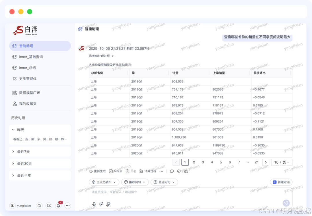 10 月版本焕新上线!Smartbi AIChat 与一站式 ABI 平台再升级,聚焦「交互体验、数据效率、部署适配、安全管控」四大方向,解决沟通闭环、国产化迁移、大规模授权加载慢等实际业务痛点,让数据分析更顺畅、部署更灵活、安全更可靠,助力企业降本提效!下文为你拆解功能亮点~