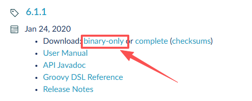 2.可以手动下载gradle的zip文件,地址:https://gradle.org/releases/,下载版本可以查看项目文件夹中的“gradle-wrapper.properties”文件,如: