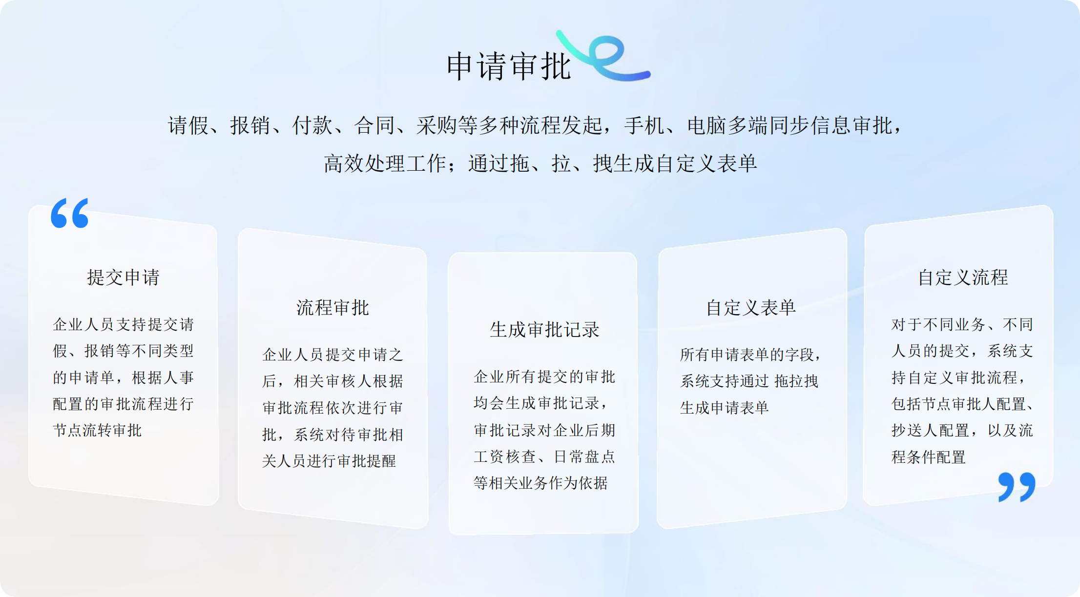 用户可根据自己特有需求,自定义工作表单、审批流程等工作流程;