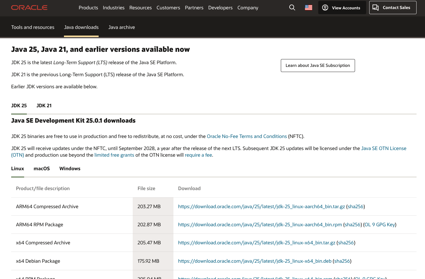 今天小编翻看了一下 JDK 官网,发现 JDK 都已经在出到了 JDK25 了。然后我相信还是有很多企业和个人依旧在用的是 JDK8。