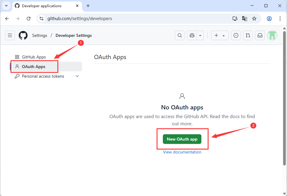 登录之后进入【 Settings 】→【 Developer settings 】→【 OAuth Apps 】。
