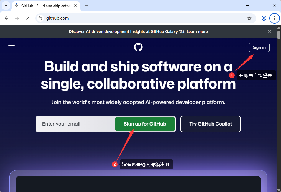 2,在你的 Git 服务提供商处创建 OAuth 应用,本教程以 GitHub 为例。进入 GitHub 官网: https://github.com/ 。