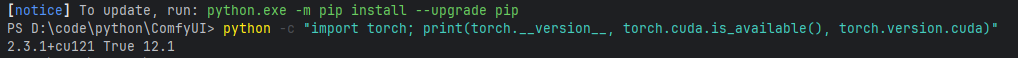 python -c "import torch; print(torch.__version__, torch.cuda.is_available(), torch.version.cuda)"