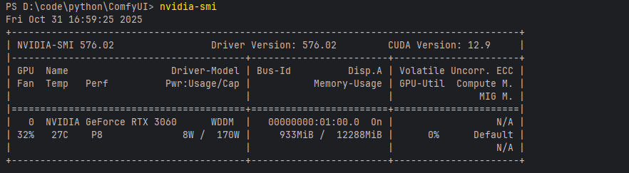 - 之前安装的是 RTX 3060 + 驱动 576.02 → 可以用 CUDA 12.1。