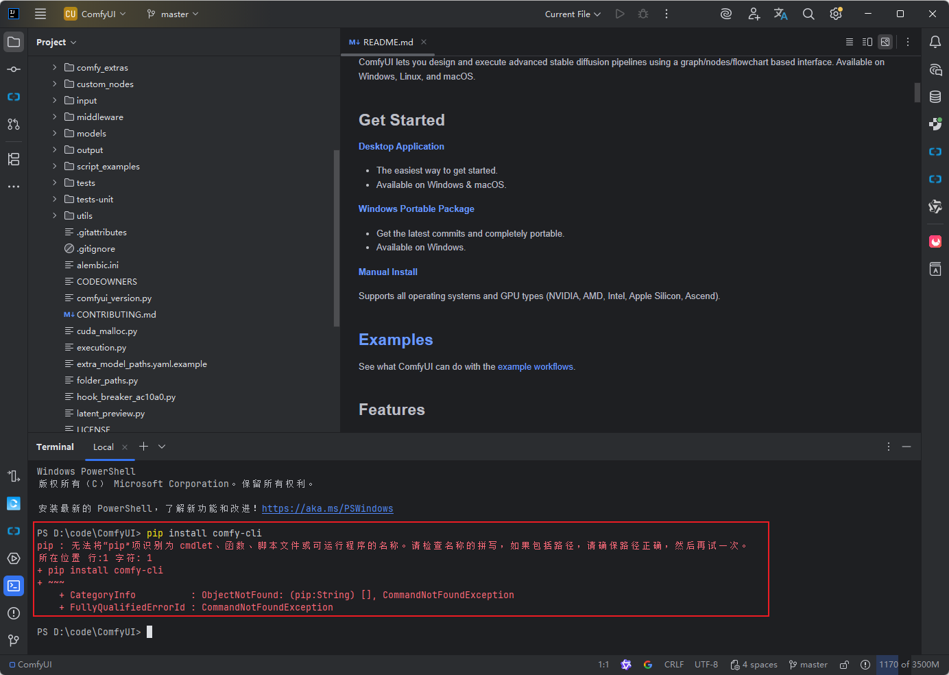 - 执行 pip install comfy-cli 发现如下错误,表示没有安装python环境
