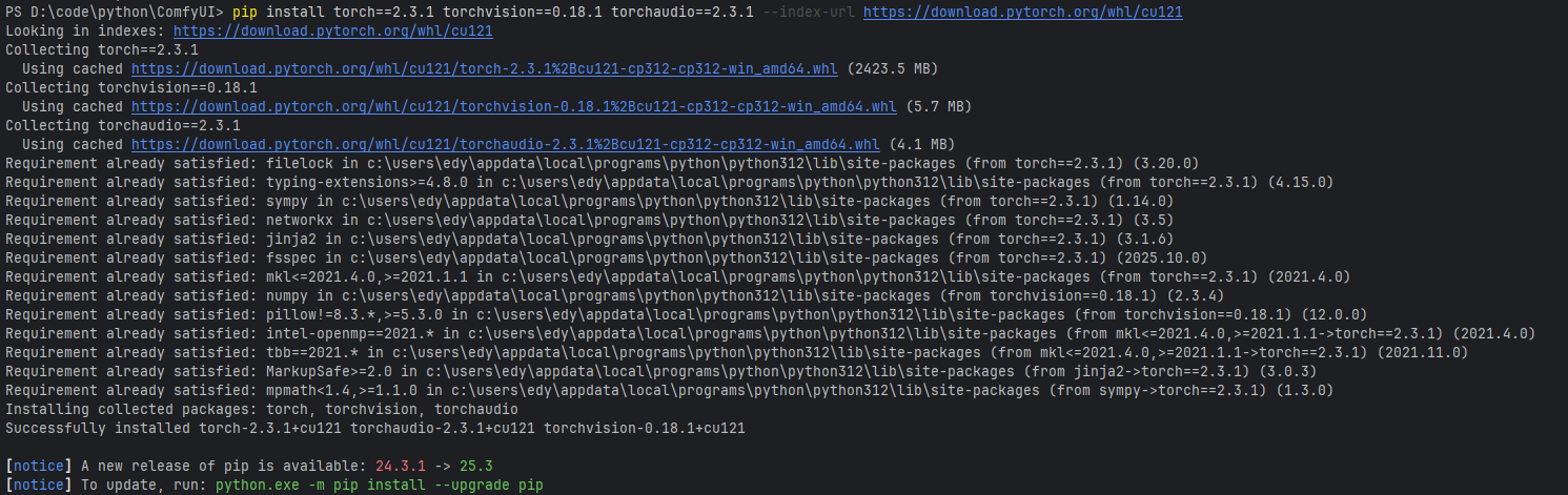 pip install torch==2.3.1 torchvision==0.18.1 torchaudio==2.3.1 --index-url https://download.pytorch.org/whl/cu121