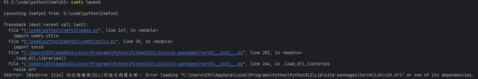 OSError: [WinError 1114] 动态链接库(DLL)初始化例程失败是 PyTorch + NVIDIA GPU 在 Windows 上的常见问题,通常和 显卡驱动 / CUDA / 电源管理设置 有关。解决思路: