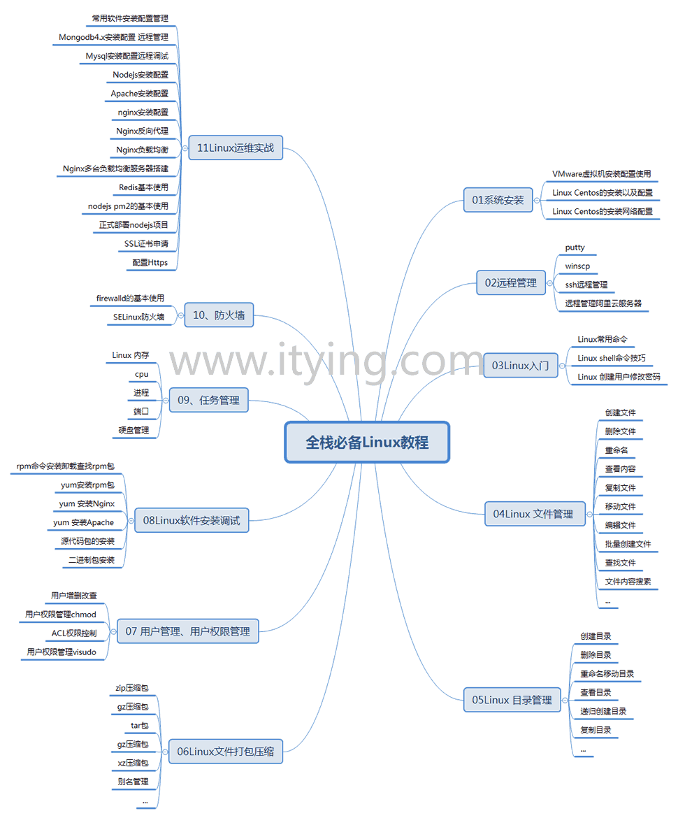 Linux系列教程涉及内容:从0开始讲解Vmware虚拟机的使用、Linux操作系统安装、Linux常见命令、Linux远程管理、Linxu云服务器管理、Linux文件管理、Linux目录管理、Linux软件包管理、Linux 网络设置防火墙、Linux服务进、程端口、Linux 安装配置Apache、Linux上安装Nodejs 、以及PM2优化nodejs性能、Linux上安装配置Mongodb、Linux上面安装配置mysql、Linux安装配置Redis、Node中使用Redis、以及Linux安装配置Nginx、Linux Nginx+Nodejs多网站配置、Linux Nginx负载均衡、Linux Redis、SSl证书申请、 Nginx https配置。