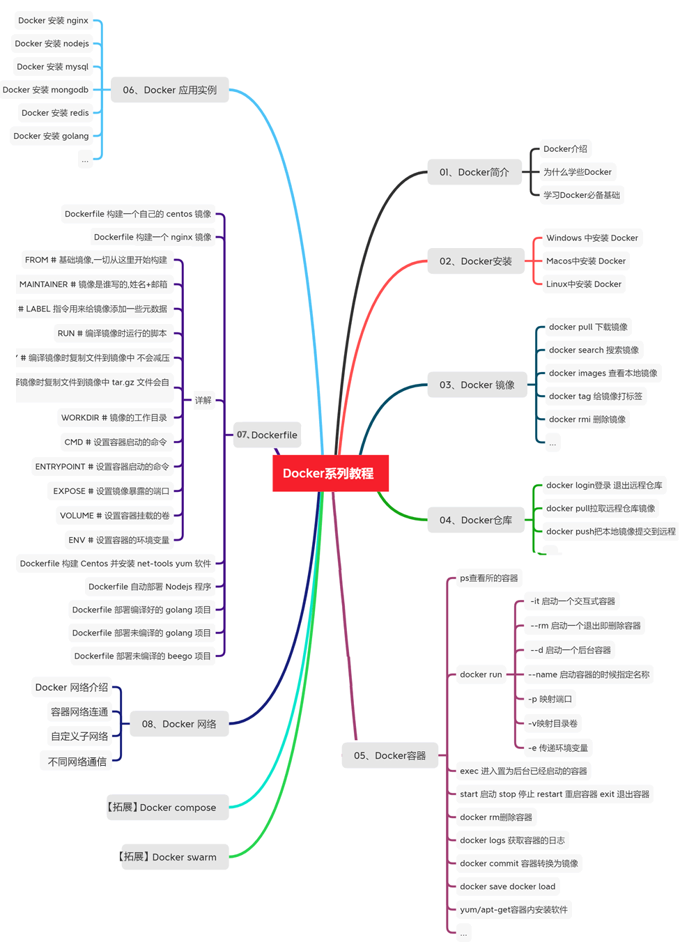 Docker系列教程涉及内容:从0开始讲解了如何在Win Mac 以及Linux中安装Docker以及配置配置镜像加速器,通俗的讲解了什么是Docker镜像 Docker容器 Docker仓库,手把手的讲解了Docker镜像 Docker容器 Docker仓库的常用命令 Docker中的端口映射、数据卷挂载、传递环境变量,通过示例讲解了如何在Docker中部署Nginx、部署Nodejs、部署Mysql、部署Mongodb、部署Redis、部署golang、部署beego,详细的讲解了Dockerfile 以及如何通过Dockerfile 自动化部署自己的Nodejs、部署自己的golang、以及通过Dockerfile 构建自己的linux镜像,会部署应用以后我们还需要让应用通信,所以又讲解了Dcoker网络以及docker多台服务器容器跨主机通信。最后又讲解了Docker compose 和Dokcer swarm集群编排,以及如何使用swarm结合consul快速部署微服务。