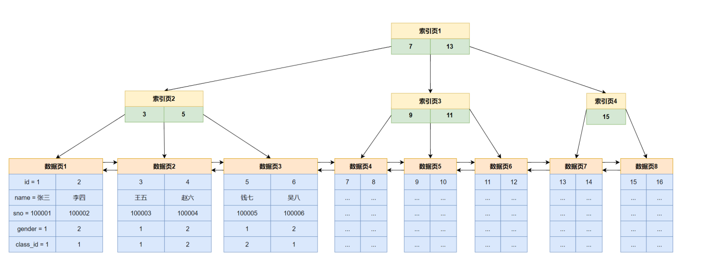 MySQL 索引(B+树)的每一层结点都是独立的页 , 通过页内指针和页间链表组织 , 实现高效数据查询