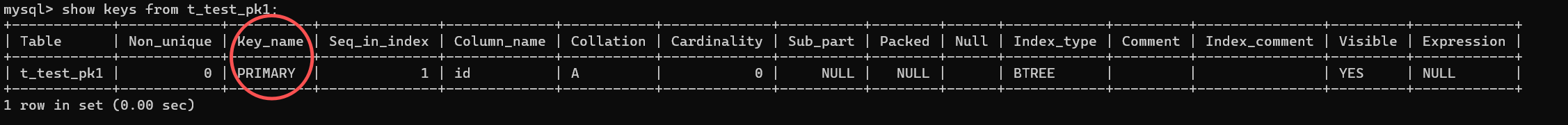 create table t_test_pk1(id bigint auto_increment,name varchar(20),primary key(id)