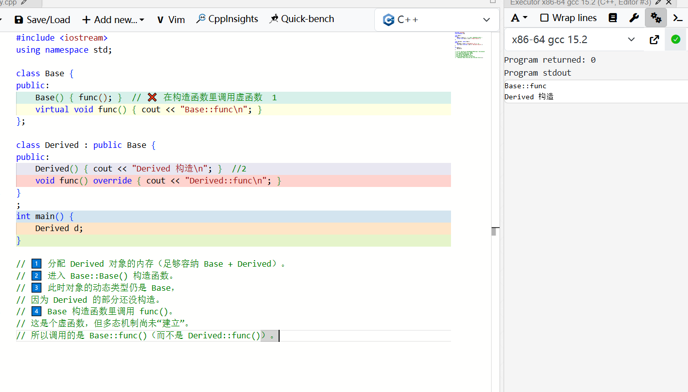 };class Derived : public Base {public:~Derived() { cout << "Derived::~Derived()\n"; }