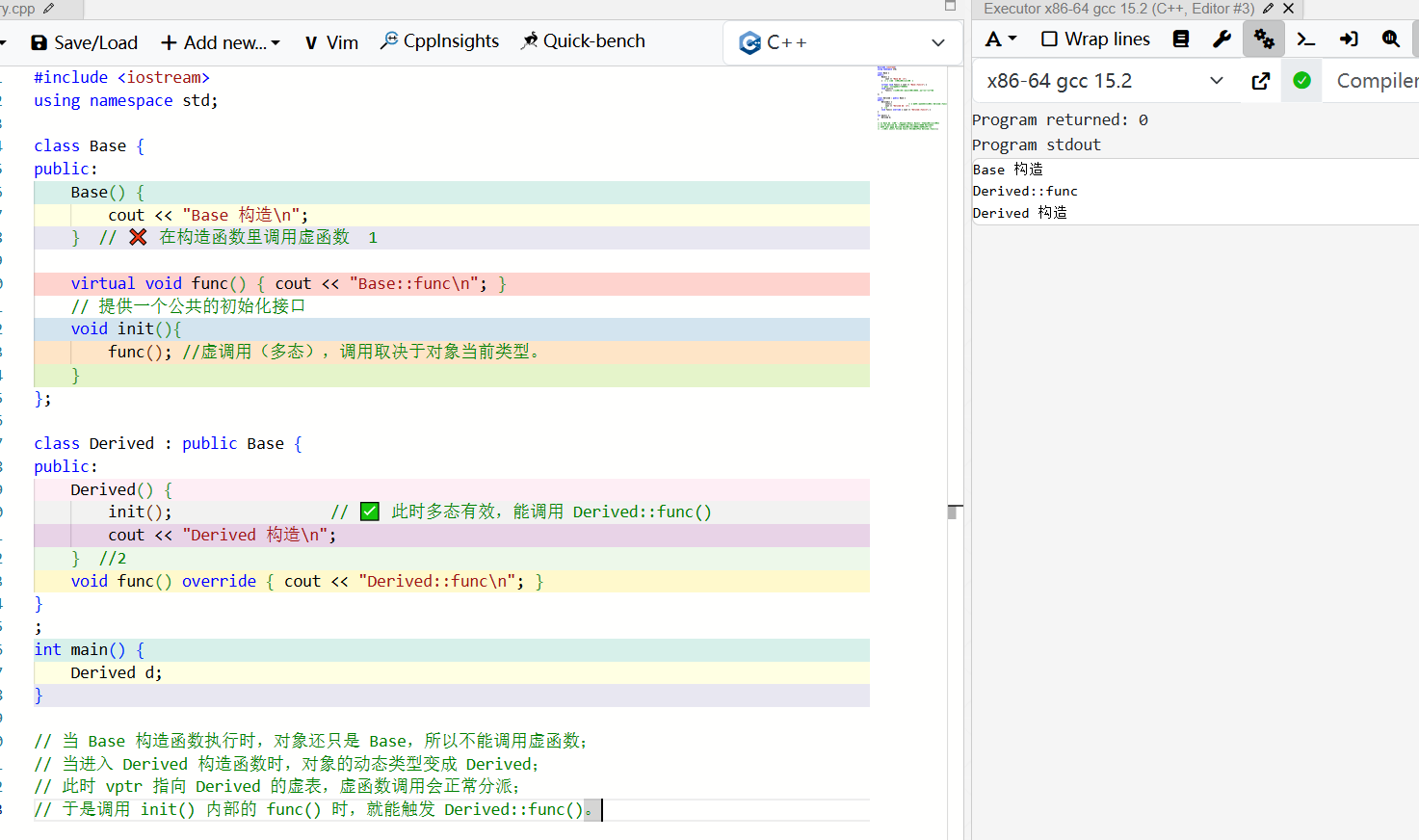 1️⃣ 构造 Base 部分(调用 Base::Base())
