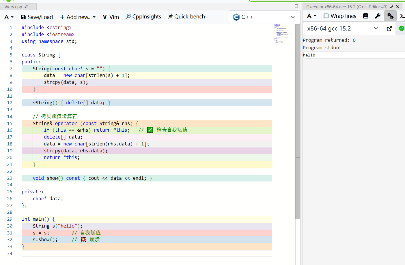 这个就是自我赋值,如果没有处理好,就可能在赋值过程中把自己给毁掉了。