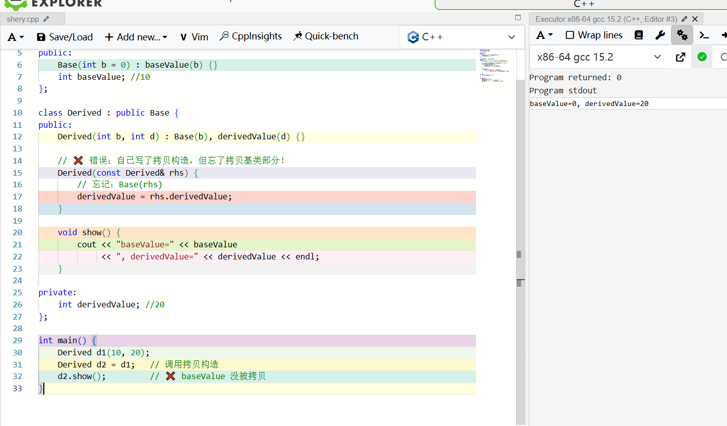 一旦定义了自己的拷贝构造函数或operator=,编译器就不会再自动生成默认版本,而默认版本里才会包含”基类+成员“的完整拷贝逻辑。