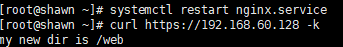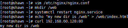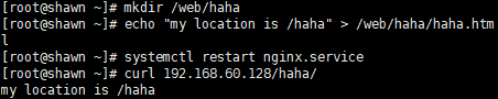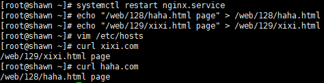 }[root@server ~]# systemctl restart nginx.service[root@rhce ~]# echo "/web/128/haha.html page" > /web/128/haha.html