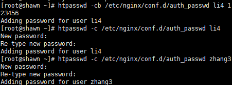 [root@server ~]# htpasswd -c /etc/nginx/conf.d/auth_passwd zhang3
