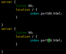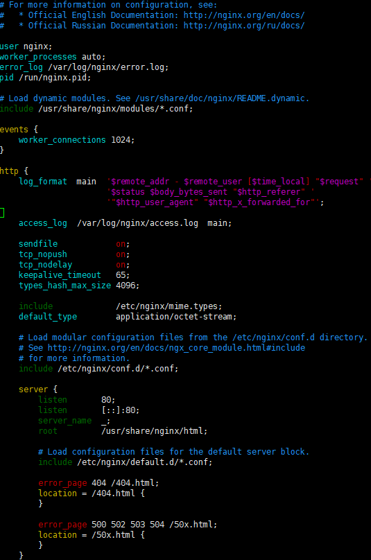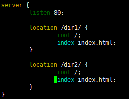 server {listen 80;server_name localhost;location / {root /usr/share/nginx/html;index index.html index.htm;}