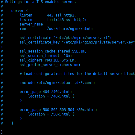 # ssl_certificate "/etc/pki/nginx/server.crt"; # 证书路径
