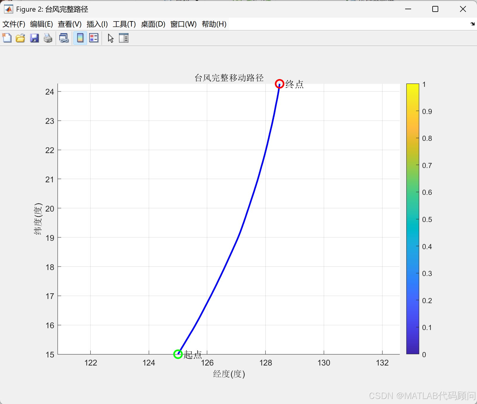 lon(1) = 125; % 初始经度(度)% 台风强度参数