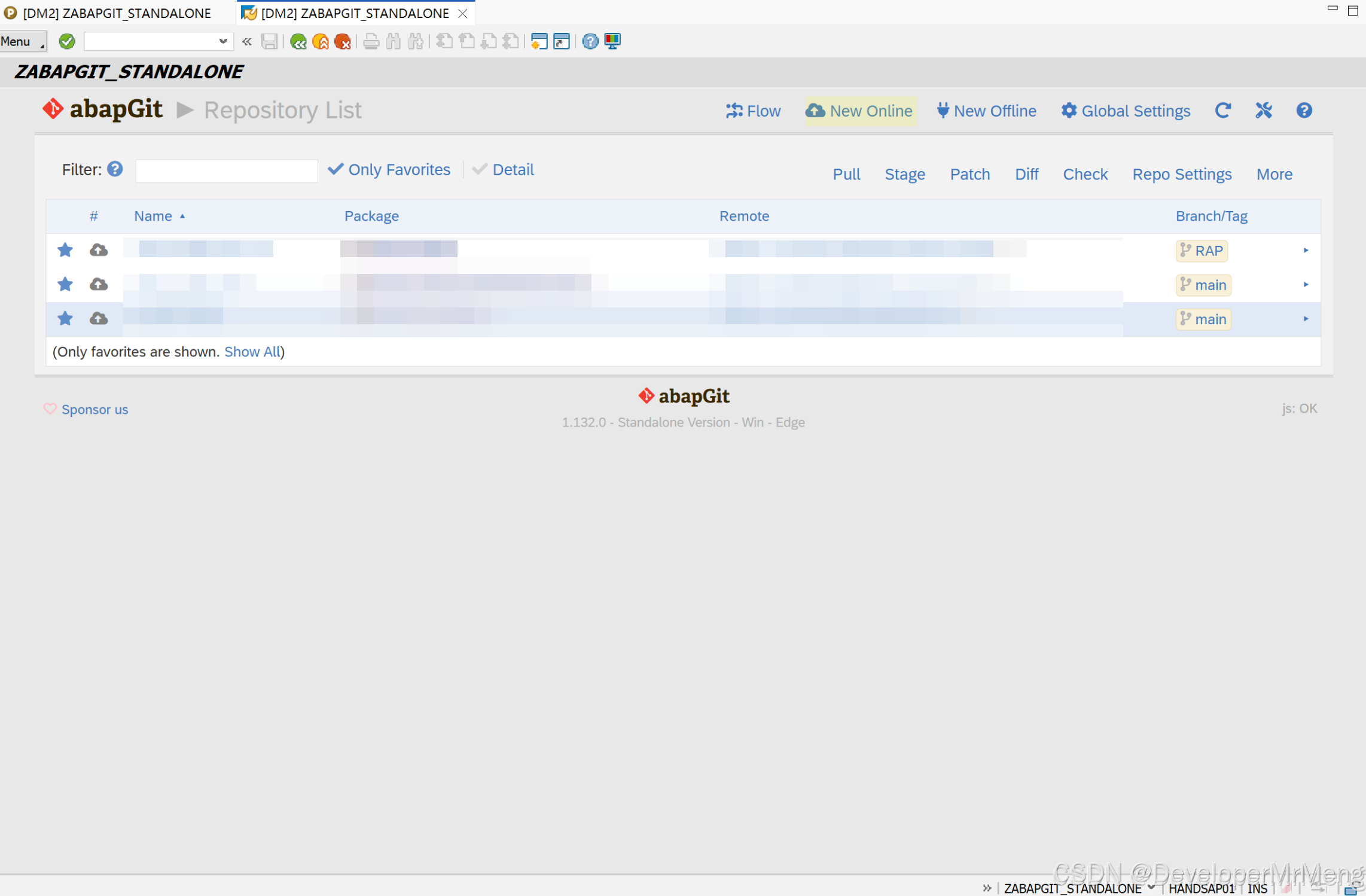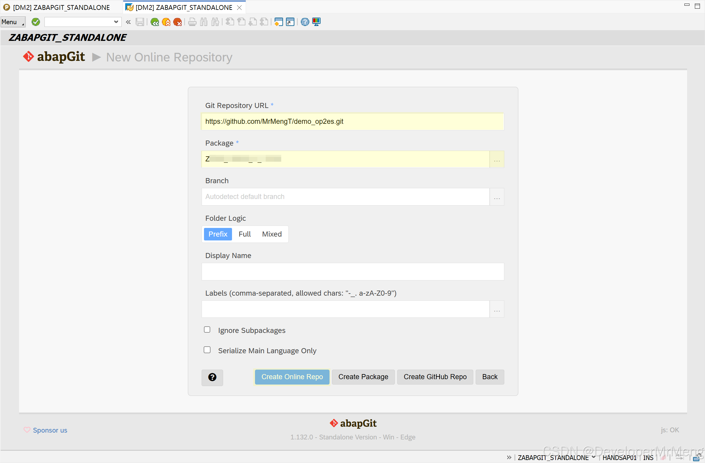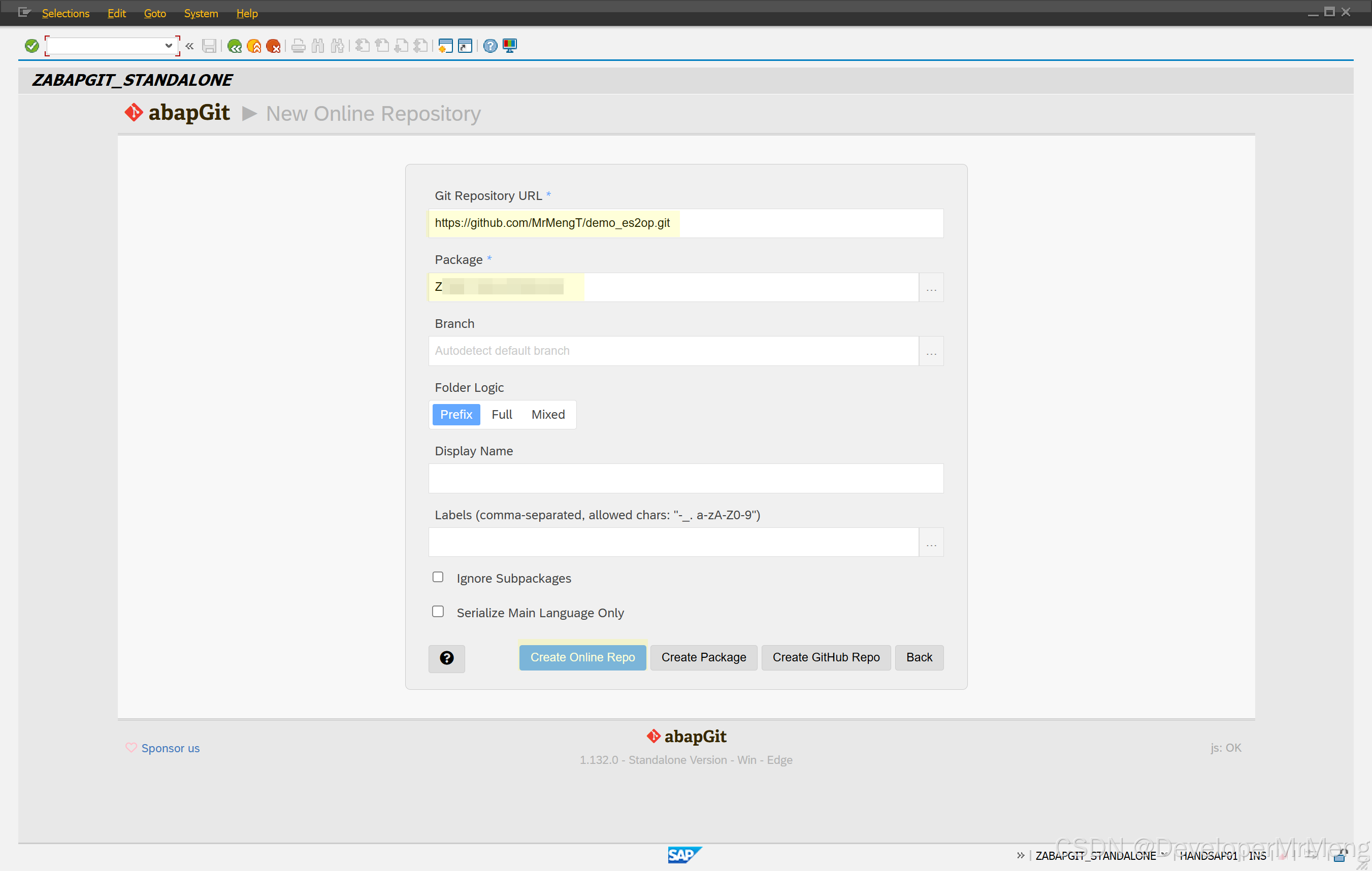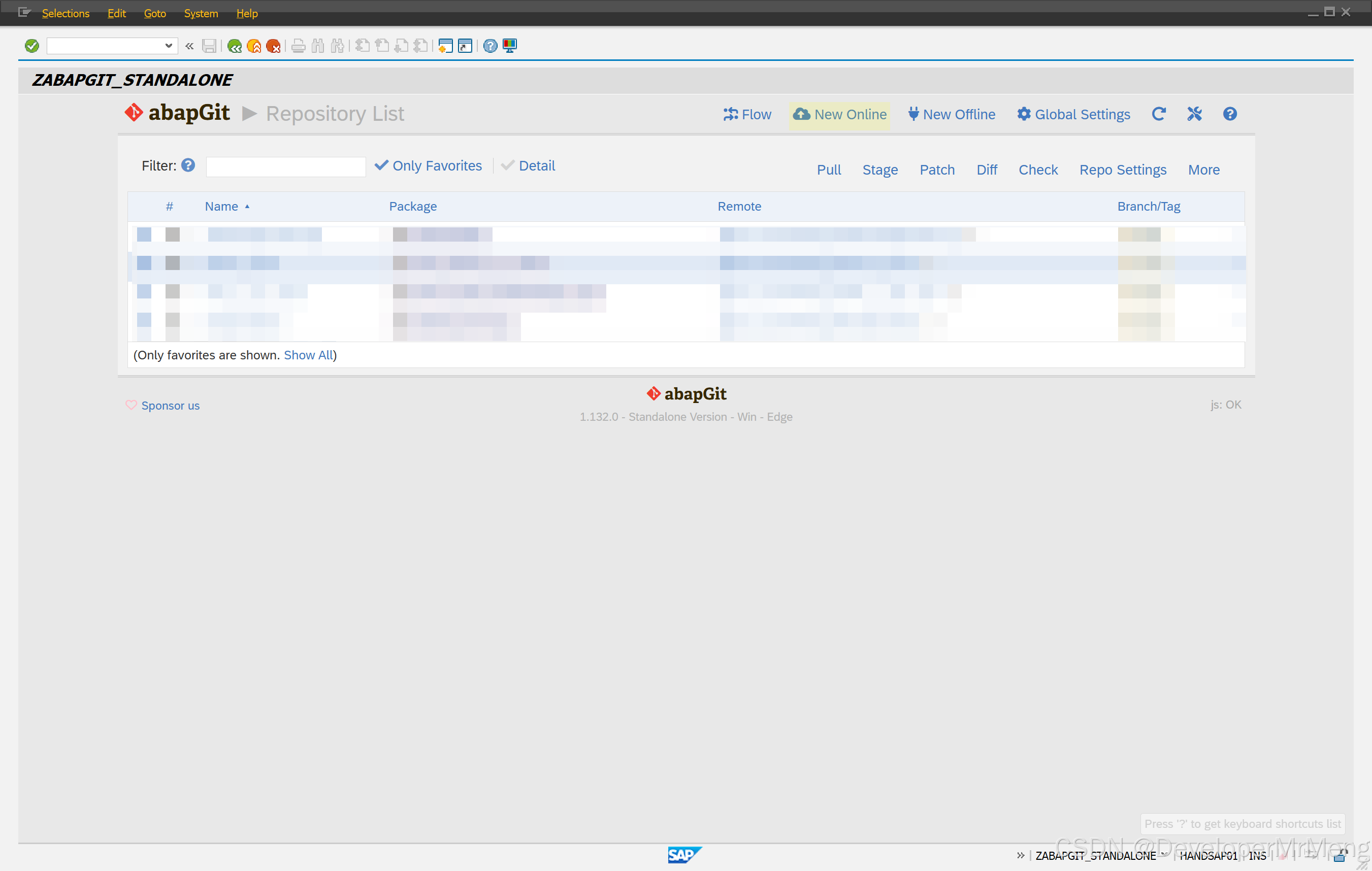 运行程序ZABAPGIT_STANDALONE,点击NEW Online: