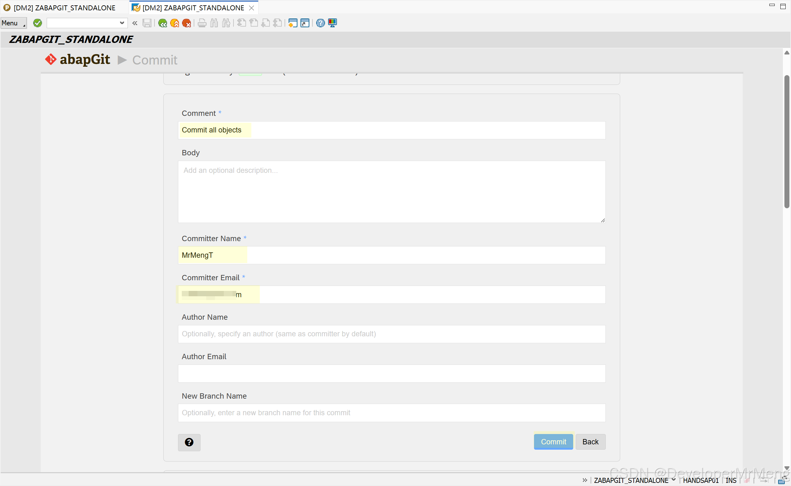 输入必输信息,点击Commit: