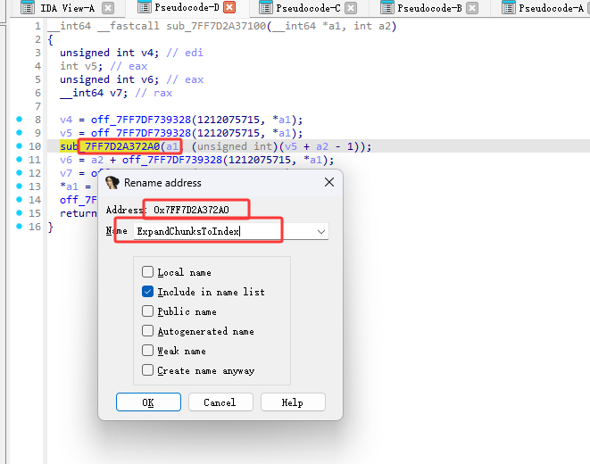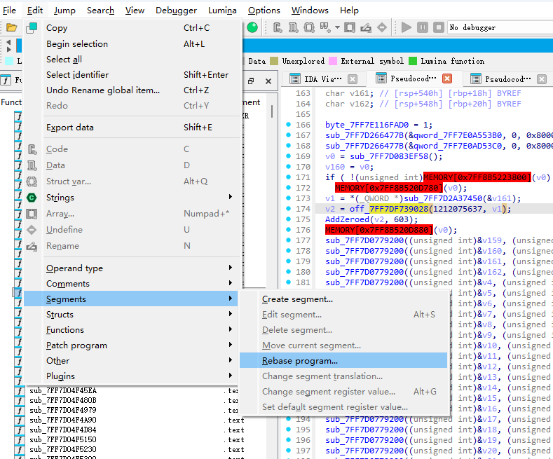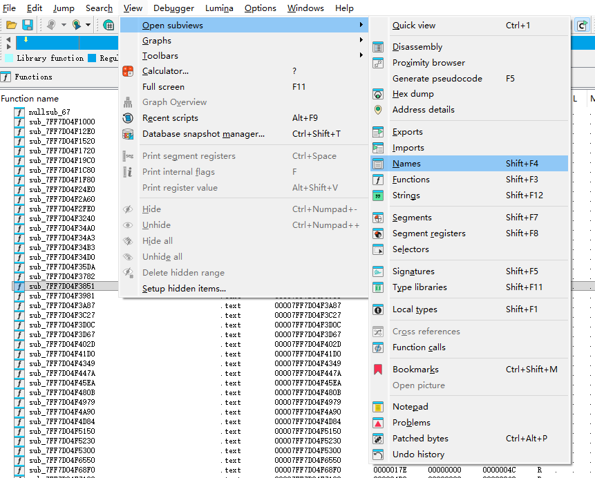 然后计算GetNames的偏移,查看ida里的模块首地址点击Rebase