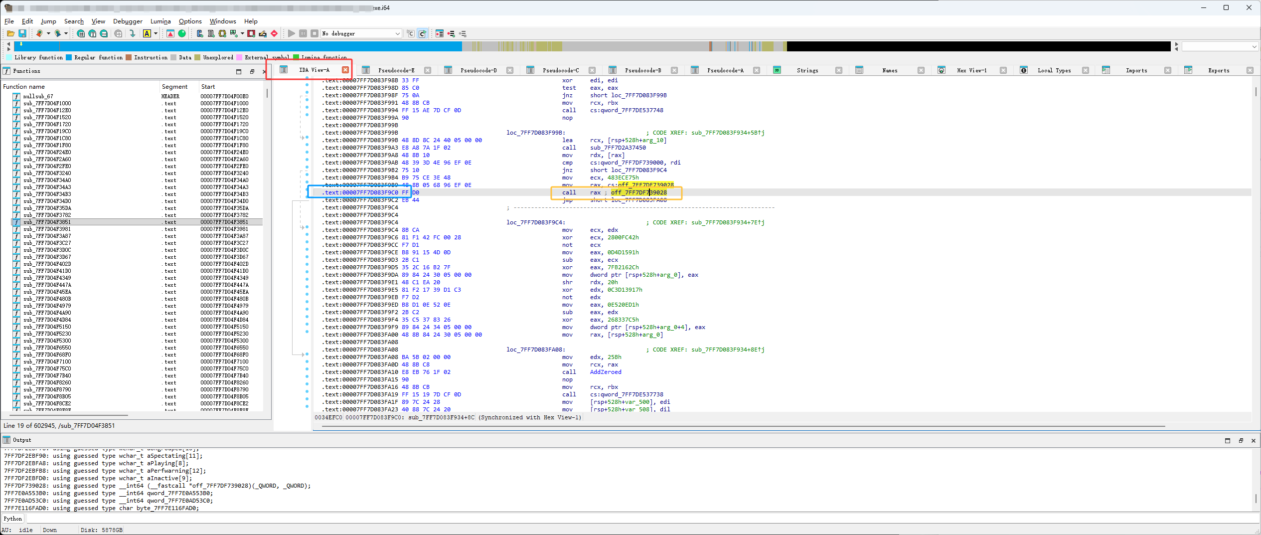 然后就可以看到从ida看到的代码了,它call的是7FF4DE571819这个地址