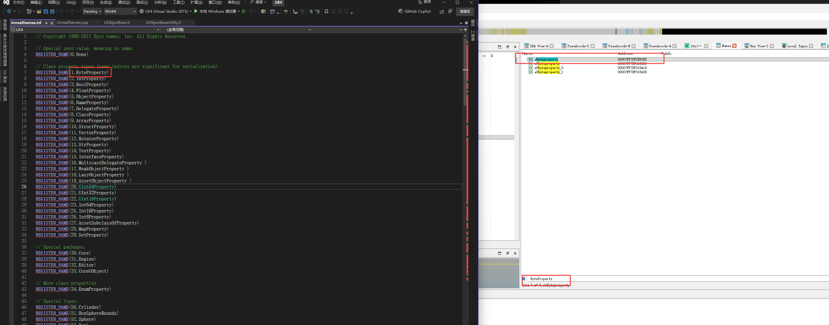 然后搜索UnrealNames.inl里面的内容,如下图红框